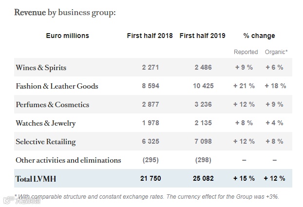 半年报显示,LVMH在2019年上半年实现收入250.82亿欧元,同比增长15%;经常性业务的利润为52.95亿欧元,增长14%;集团净利润32.68亿欧元,同比增长9%。亚洲、美国和欧洲市场增长强劲,尤其法国第二季度出现了反弹。