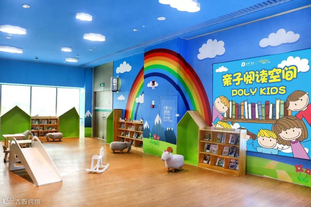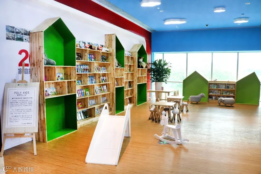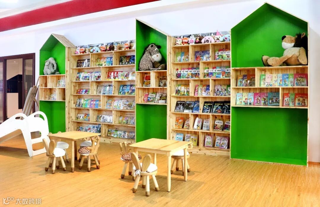 青绿色的“书阁”上面摆放着可爱的毛绒公仔