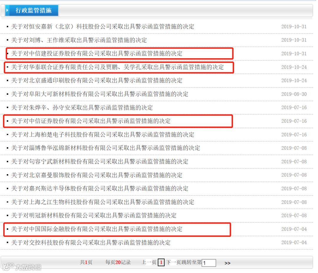 继中金、中信之后,又一家券商因在保荐科创板项目中未能勤勉尽责而收到了监管的警示函,处罚对象是近两年来投行业务高速发展的中信建投证券。此外,华泰联合证券也于近日因保荐非公开发行股票项目中的信披问题收到警示函。