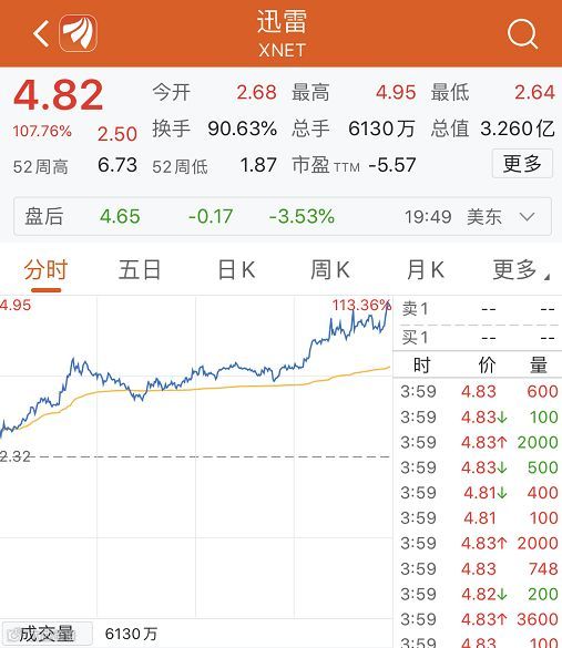受中央政治局集体学习区块链重磅利好刺激,美国市场中概股相关题材集体爆发。区块链龙头迅雷大涨107.76%,创上市以来单日最大涨幅。