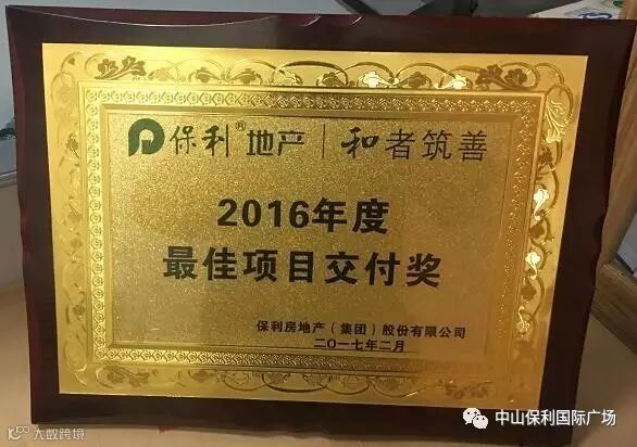 “2016年度最佳项目交付奖”开年迎来第一个大奖,中山保利国际广场是粤东保利24个楼盘中的唯一获得者。中山保利国际广场感谢各位业主朋友的支持和信赖,未来我们将继续用最高标准的服务真诚善待每一户家庭。