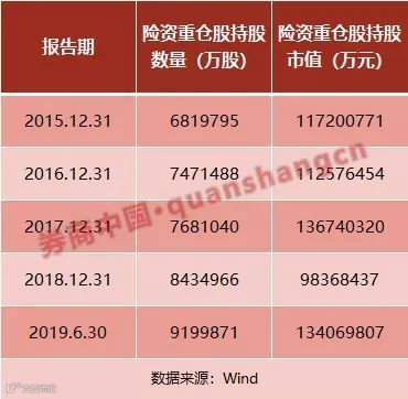 剔除掉平安集团对下属子公司平安银行的持股、国寿集团对下属子公司中国人寿的持股,保险机构近5年来一直持有的股票数量合计268亿股,持仓市值为2714亿元(截至2019年6月末)。