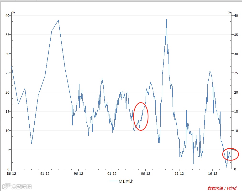首先就是货币环境。当年的牛市起来,可以说与M1反弹有着非常密切的关系。而现在M1还处于选择方向的时候,若10月份仍不能提前发行专项债,M1甚至还有下行的可能性。