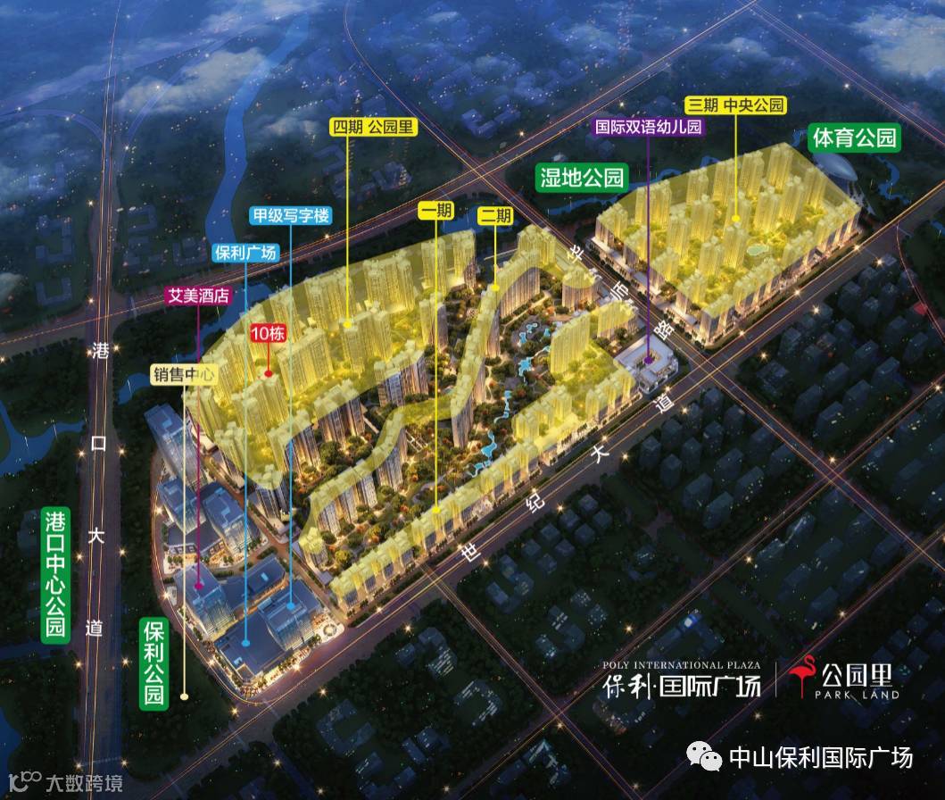 保利国际广场【公园里】位于中山城北核心区位,中山市北拓的发展轴线桥头堡的港口镇。天生优质,坐拥一桥一铁二轨五高速的黄金立体交通路网,1公里即深中通道出入口,5公里内即中山北站轻轨站。