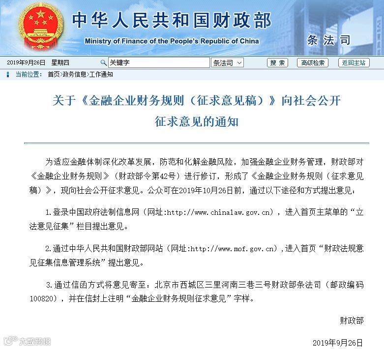 据记者了解,此次公布的《金融企业财务规则》这已是第二轮征求意见,第一轮在去年底,两轮征求意见稿内容几乎完全一致。
