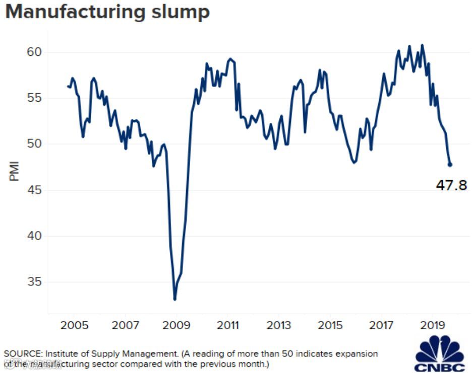 美国供应管理协会(ISM)昨日晚公布,美国9月制造业采购经理人指数(PMI)为47.8,大幅低于预期,是2009年6月以来最低。该指标低于50表明制造业正在经历萎缩。