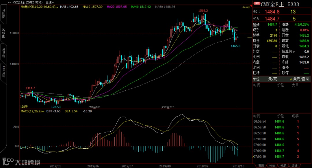 美国经济唱衰,市场对美联储进一步宽松有了新的期待,具备避险功能的黄金因此得到提振。金价在经历前一日的大跌后,昨日小幅反弹,纽约商品交易所12月交货的黄金期货合约价格回到1485美元/盎司附近。