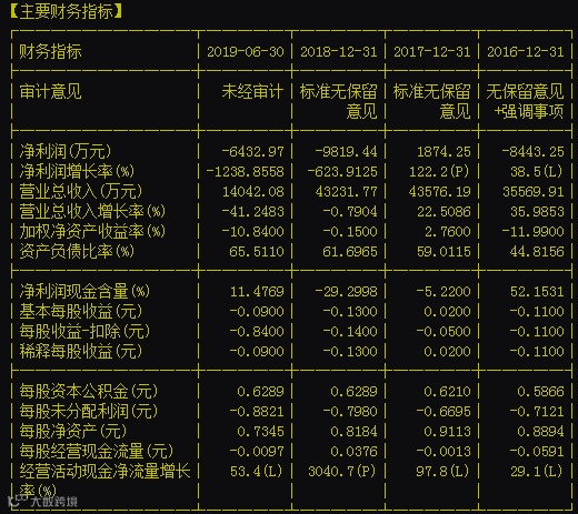 今年中报显示,宝塔实业净利润亏损高达6432.97万元,而该公司已于去年亏损高达9819.44万元,其主要财务指标可以用“烂”来形容。