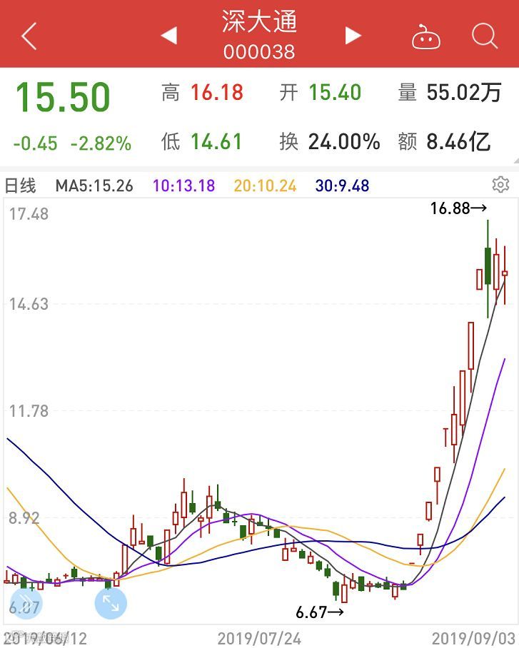 二是“粘上热点”的深大通和宝塔实业。深大通9天8板,股价翻了一倍多。而此前,该公司也是问题缠身。