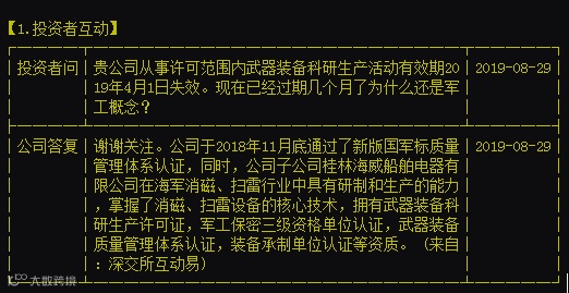 据该公司在投资者互动平台回应,公司于2018年11月底通过了新版国军标质量管理体系认证,同时,公司子公司桂林海威船舶电器有限公司在海军消磁、扫雷行业中具有研制和生产的能力,掌握了消磁、扫雷设备的核心技术,拥有武器装备科研生产许可证,军工保密三级资格单位认证,武器装备质量管理体系认证,装备承制单位认证等资质。
