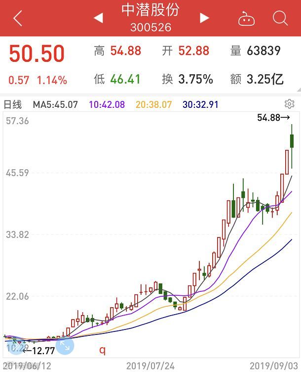 中潜股份从5月份启动至9月3日最高位涨幅超过400%。