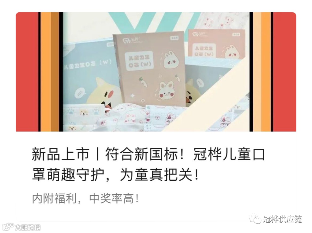 冠桦供应链冠桦新品儿童卫生口罩上周已经上市,