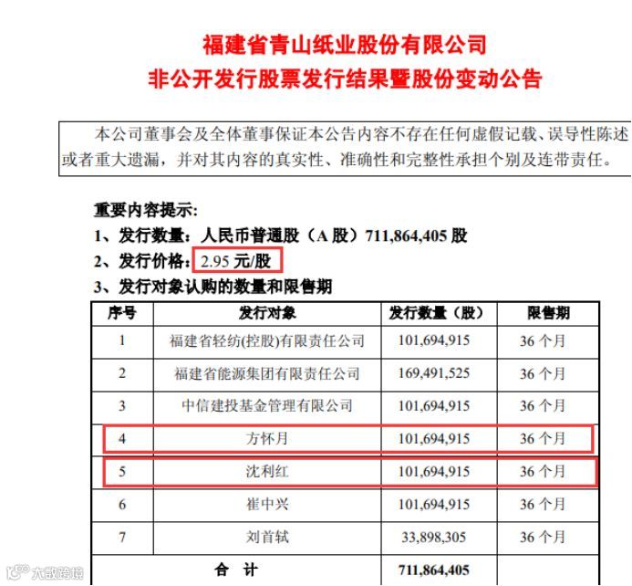 不过,查询昔日资料,2016年9月,方怀月、沈利红的定增入股价为2.95元/股。此后青山纸业除了今年5月份对2018年实施10转3股的送转方案后,并无其他扩张股本的行为。目前青山纸业股价仅为2.09元,即便在考虑权息因素后,仍然处于浮亏状态。