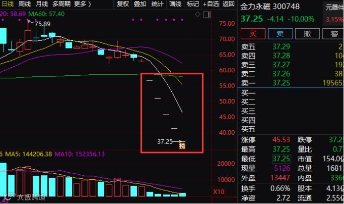 如近期股份解禁后即抛出减持计划的金力永磁,股价近期已连续5个交易日跌停。
