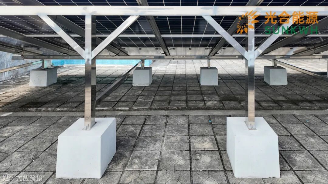 利用承重底座固定光伏,不对屋面钻孔,不破坏屋顶原有结构,通过浇筑基础安装。