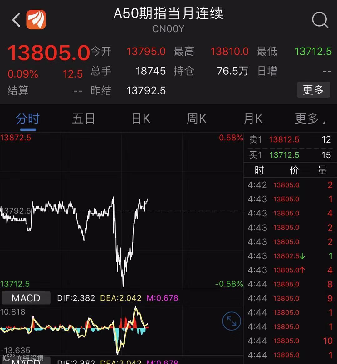 首先,A50指数的表现似乎能够更为直接地说明问题。该指数跟美股的走势极为相似,跳水之后迅速拉回。显示出市场依然存在较强的承接力。