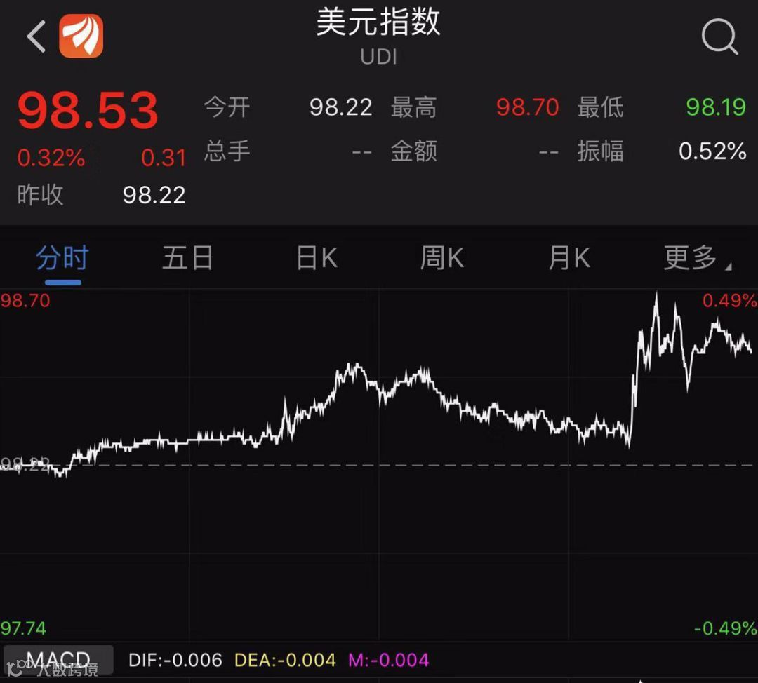 年内不再降息的预期令到美元再受追捧,美元指数再度突破98。