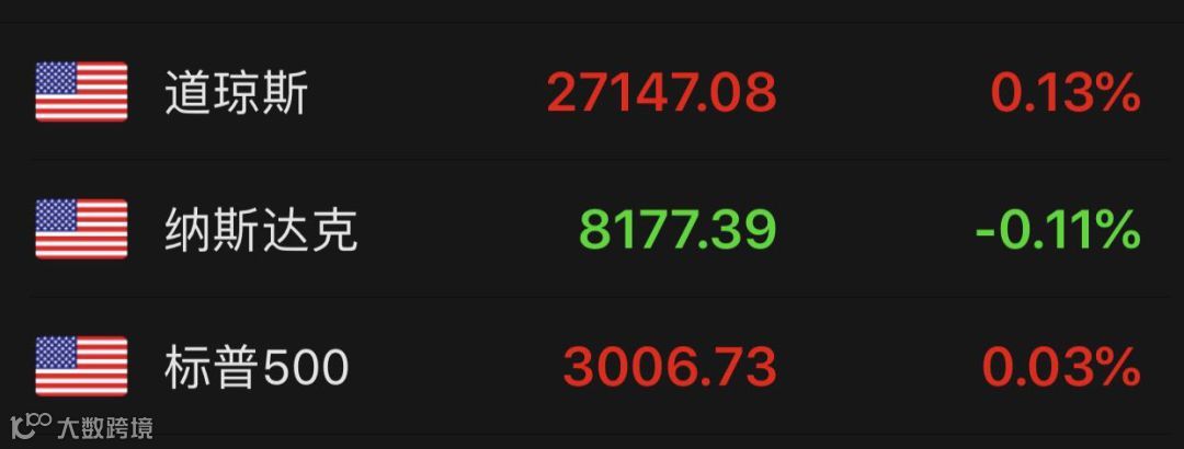 鲍威尔的一句话让美股止血回稳。他表示,将会重新讨论何时扩大资产负债表的问题,扩大资产负债表规模的时间有可能比预期的更早。这令市场的乐观情绪重新升温,最终美股收盘涨跌互现,道指涨0.13%,标普微涨0.03%,纳指则下跌0.11%。