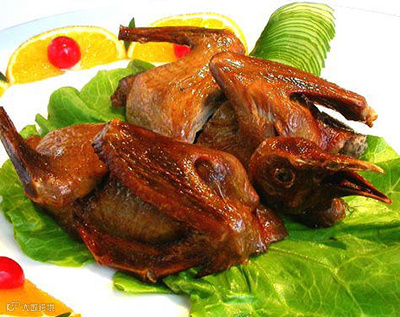 石岐盛产乳鸽,以体形大、胸肉厚、肌肉饱满、肉质嫩滑爽口而饮誉省港澳市场。石岐不少酒家饭馆所泡制的乳鸽,也极为食客所喜爱。其中最著名的是中旅集团富华宫的红烧乳鸽,其色泽金黄,皮脆肉滑,骨软味美,真是吃后齿颊留香,最为食家所赞许;而淮杞炖鸽,除汤味鲜美可口外,鸽肉亦极为嫩滑。不少酒家还各出奇招,使乳鸽制作花样百出,如吊烧鸽、生炸鸽、卤水鸽等等,都有不同风味,同受食客的欢迎。乳鸽作为中山的名菜,除色、香、味俱全外,还在于可兼作药用食疗,因乳鸽肉性温平、入肾肺,有治肺肾伤损久患虚亏功效,还可治疗皮肤恶疮顽癣、癫疯瘰疬溃疡,故此菜式历久不衰。