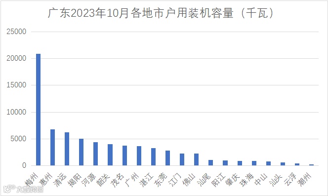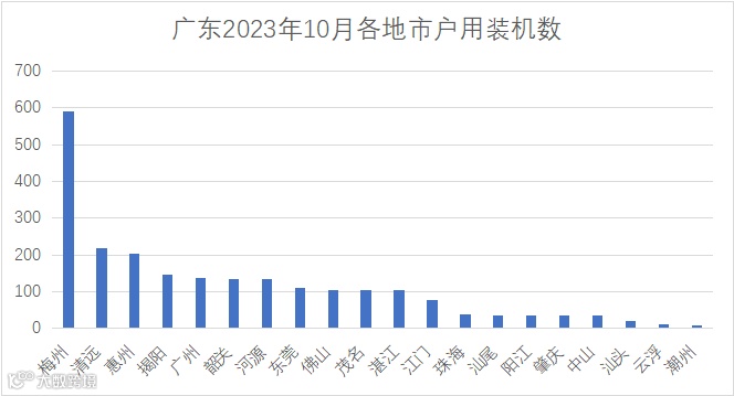 据数据统计,2023年10月,广东省新增户用装机2289户,总规模为70.93MW;其中,梅州、清远、惠州位列前三。