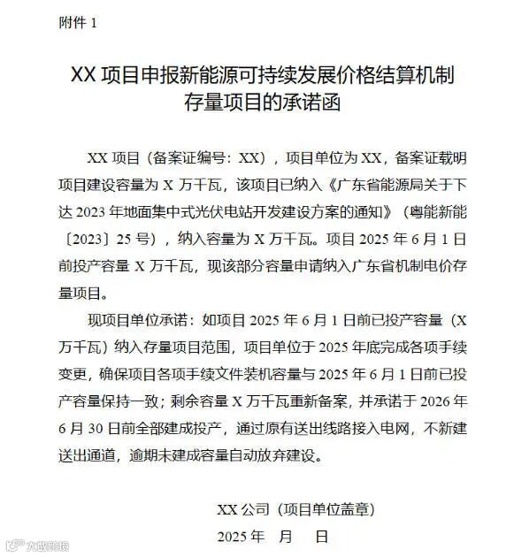(一)可将项目核准(备案)容量变更为2025年6月1日前已投产容量。对于已纳入《广东省能源局关于下达2023年地面集中式光伏电站开发建设方案的通知》(粤能新能〔2023〕25号)的地面集中式光伏发电项目,剩余容量可重新备案,作为增量项目执行,并承诺于2026年6月30日前全部建成投产,通过原有送出线路接入电网,不新建送出通道,逾期未建成容量自动放弃(承诺函见附件1)。