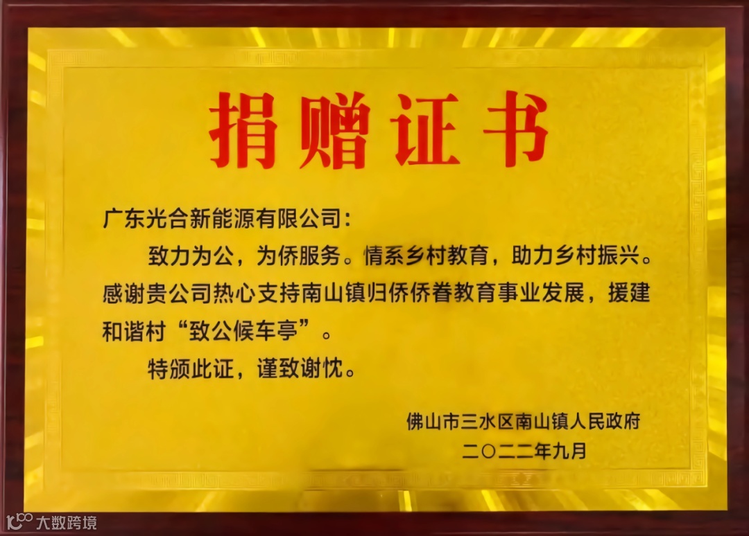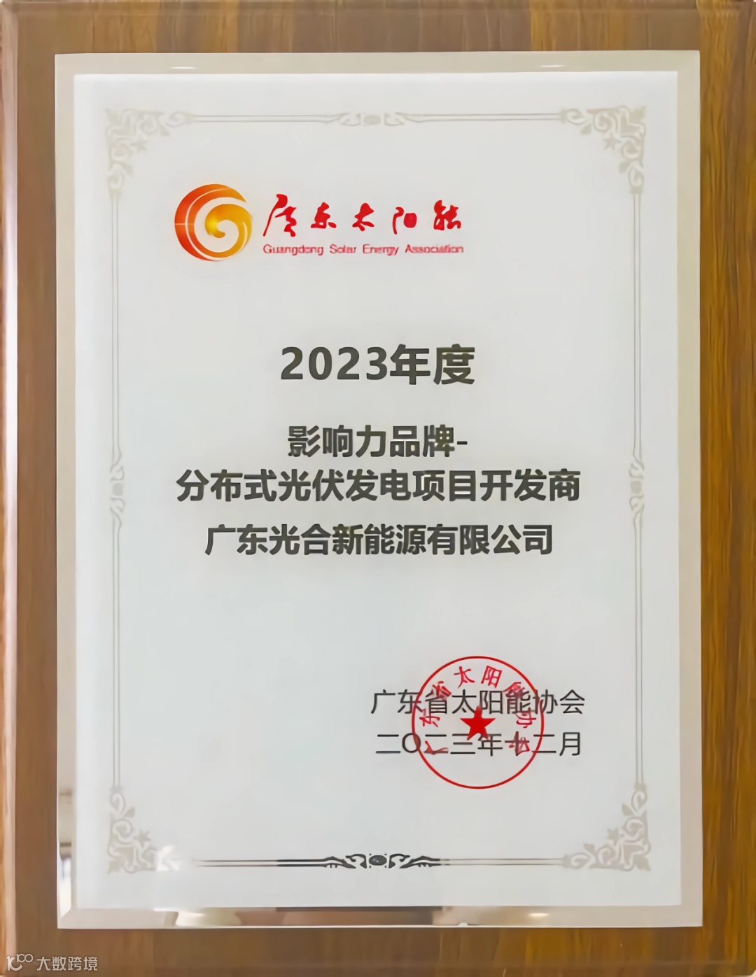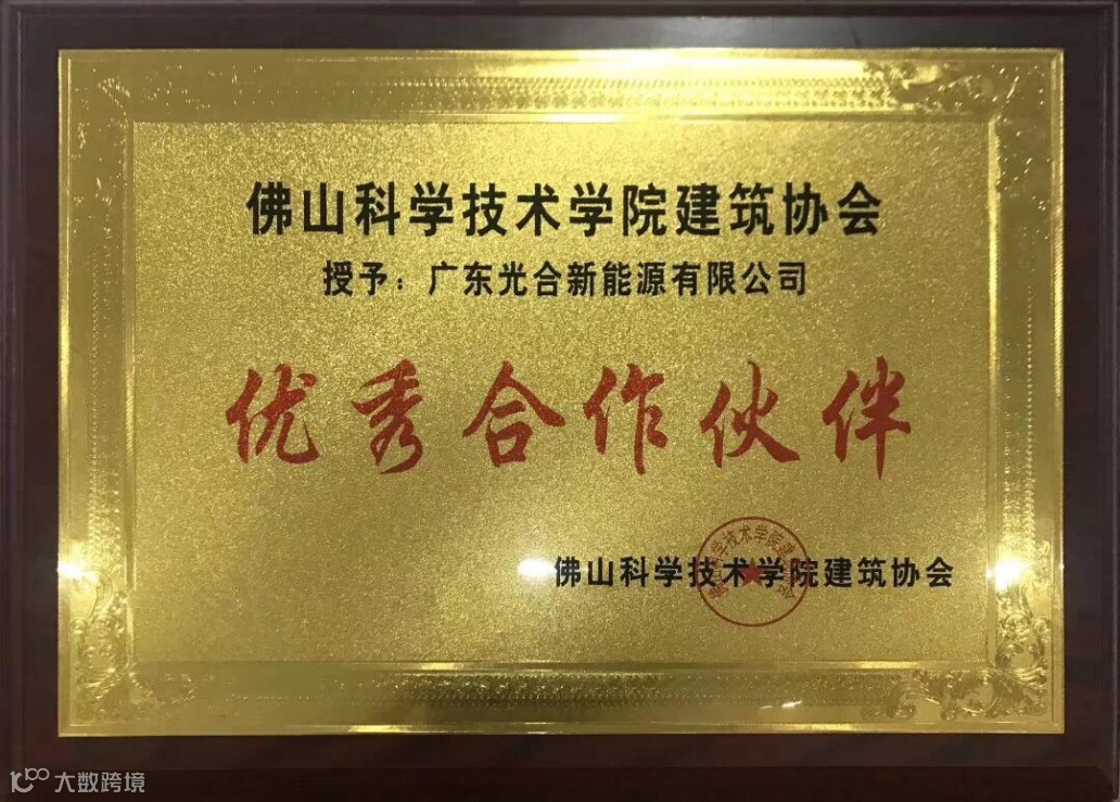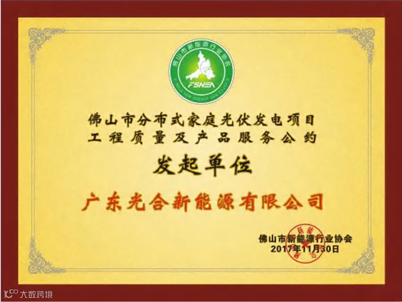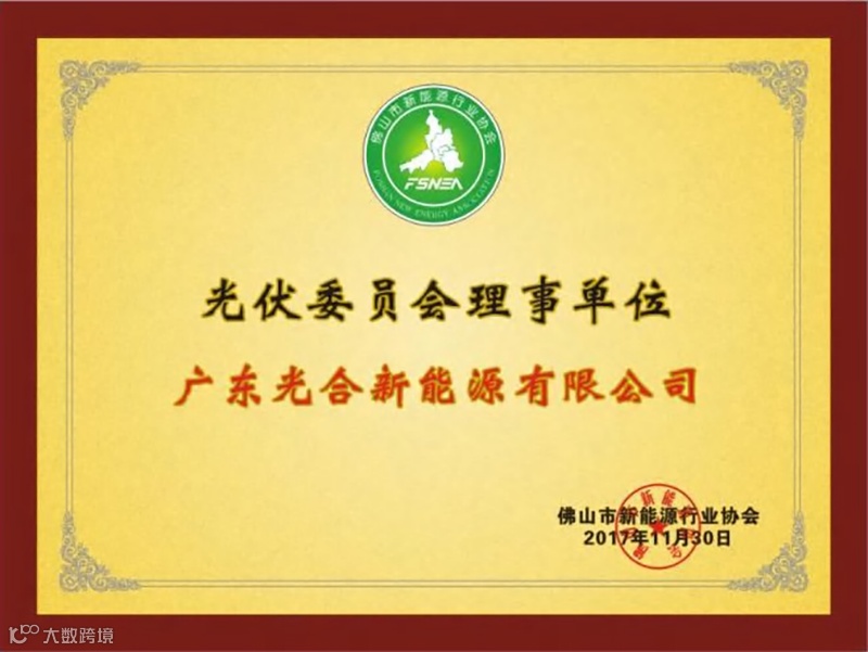 该奖由佛山市新能源行业协会颁发的,光合能源是佛山最早一批进入光伏行业的企业,在珠三角地区设立多个服务点,为用户提供完善的光伏电站整体方案,是光伏企业的典范。