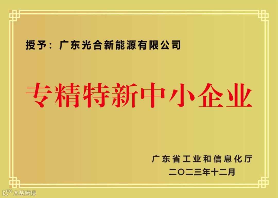“专精特新”中小企业是指具有“专业化、精细化、特色化、 新颖化”特征的中小企业,光合能源规模完全符合国家《中小企业划型标准》。