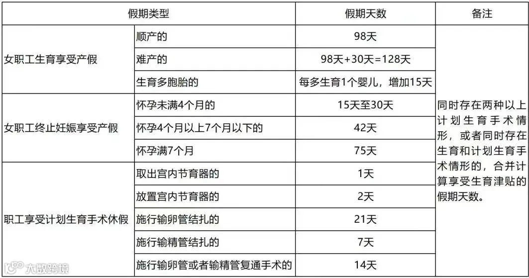 生育多胞胎的,每多生育1个婴儿,增加15天。