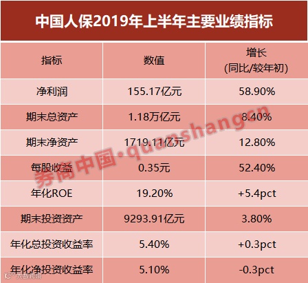 中国人保6月末投资资产规模9293.91亿元,上半年总投资收益239.48亿元,同比增长11.3%;净投资收益225.01亿元,同比下降0.7%。年化总投资收益率为5.4%,同比上升0.3个百分点;年化净投资收益率为5.1%,同比下降0.3个百分点。