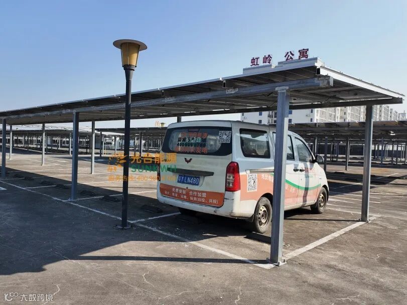 耀众物业二期屋顶车棚项目于近日成功并网发电—— 光伏车棚结合光伏与建筑,发电同时遮阳挡雨降温,适用多场景。投资收益佳,可自发自用或售电盈利;美观环保,经济实用。