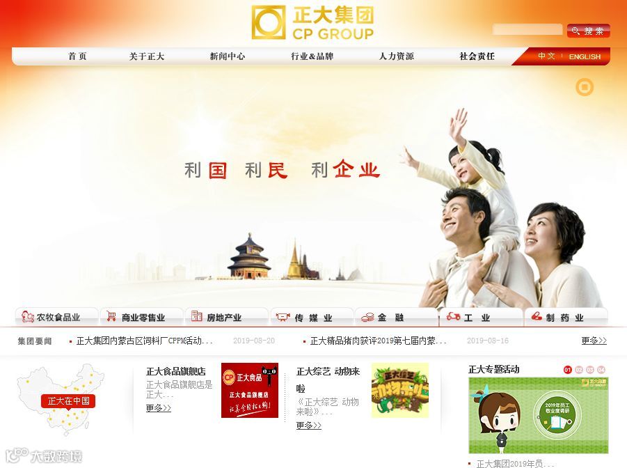 根据官网介绍,正大集团是一家以农牧食品、商业零售、电信电视三大事业为核心,同时涉足金融、地产、制药、汽机车、机械加工等10 多个行业领域的多元化跨国企业集团,业务遍及100多个国家和地区,员工总数35万人,2018年集团全球销售总额约620亿美元。