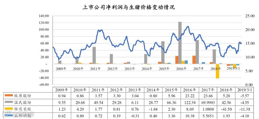 上市公司利润与猪肉价格波动高度重合(2009年至今)