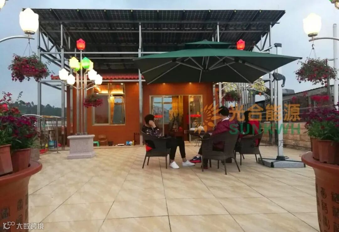 企业厂房安装棚架式光伏电站后最大的优点是多出一层使用空间,安装在办公楼上的棚架式光伏电站可以作为小型货仓使用;而对于居民光伏项目,在安装棚架式光伏大棚后用途更为广泛,不少用户利用光伏阳光棚一边进行发电自用一边把自家的屋顶打造成空中花园、运动健身房、聚会饮茶室等,时尚新潮。
