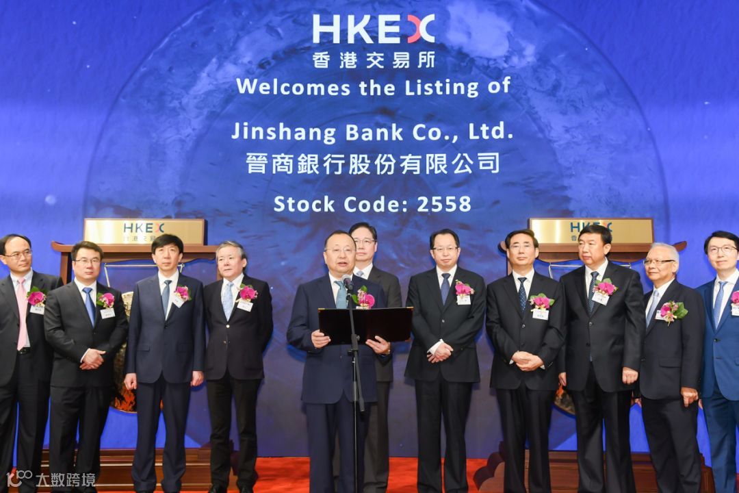 ▲晋商银行党委书记、董事长阎俊生与嘉宾在港交所合影