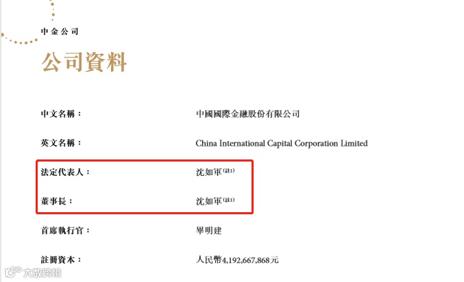 半年报显示,目前中金公司“公司资料”部分法定代表人和董事长均已更换为沈如军。中金公司称,经董事会及股东大会批准,非执行董事沈如军自2019年8月22日起担任本公司董事长和法定代表人,同时毕明建不再代为履行董事长和法定代表人职责。不过,目前中金公司官方网站尚未更新沈如军相应任职信息。