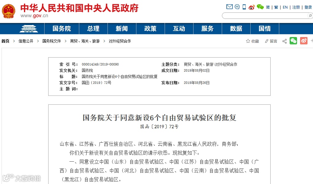 国务院8月26日印发《中国(山东)、(江苏)、(广西)、(河北)、(云南)、(黑龙江)自由贸易试验区总体方案》。而此前,这六地的呼声也最高。商务部副部长兼国际贸易谈判副代表王受文表示,此次新设的六个自贸区突出了进一步扩大开放。