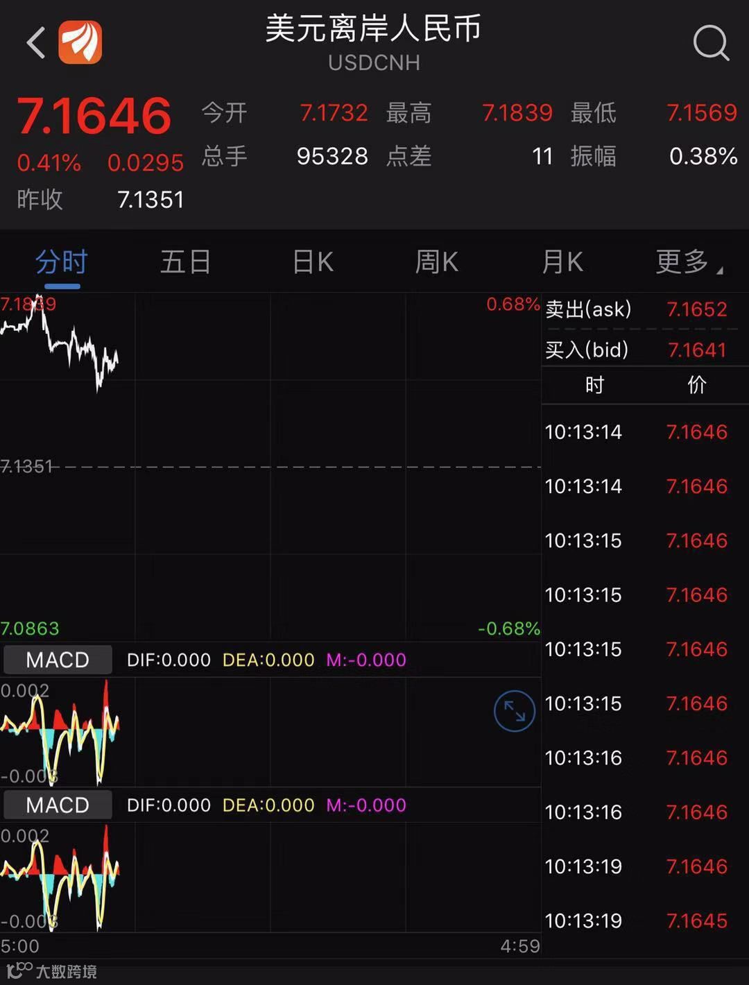早盘,人民币也没有想像的那么弱的势,在接近7.2的位置时,获得了多头支撑。