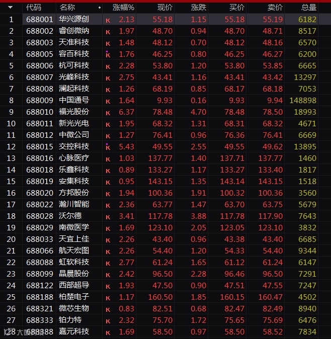 值得注意的是,今日早盘,有个板块一度全线飘红,那就是科创板!