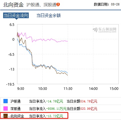 北上资金也未出现大规模撤离的情况。截至午盘,两市净流出不足16亿。