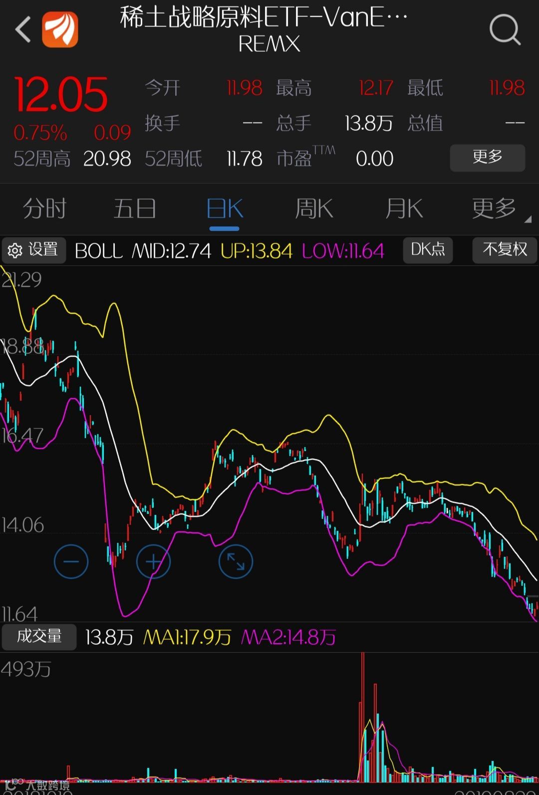 从海外市场来看,稀土的投资可能也已处在一个历史低点。全球最重要的稀土ETF目前也已跌至近三年的低位。VanEck Vectors 稀土/战略金属ETF (简称稀土ETF)是一只成立于2010年,目前管理近2.5亿美元资产的基金。该产品主要为了追踪参与生产、精炼和回收稀土元素的公司,为投资者提供了参与稀土元素领域的机会。