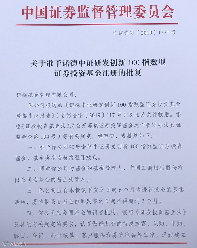 诺德基金5月上报的诺德中证研发创新100指数型证券投资基金于今日(7月17日)正式获得证监会准予募集的批文。该指数基金跟踪中证研发创新100指数,此前申万菱信同样上报了相关产品——申万菱信中证研发创新100ETF及其联接基金,不过仍待获批。