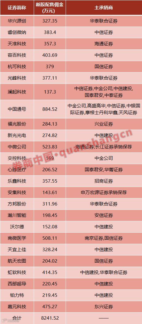 就佣金费率而言,各家主承销商不约而同地选择了最高档0.5%。不过,与动辄千万甚至过亿的承销保荐费相比,新股配售经纪佣金仍算是“蚊子腿上肉”。从25家企业的新股配售佣金情况来看,高者如中国通号可达885万元,低者如澜起科技、安集科技等则不足200万元。不过,对于券商而言,新股配售经纪佣金的意义并不完全在于资金入袋。
