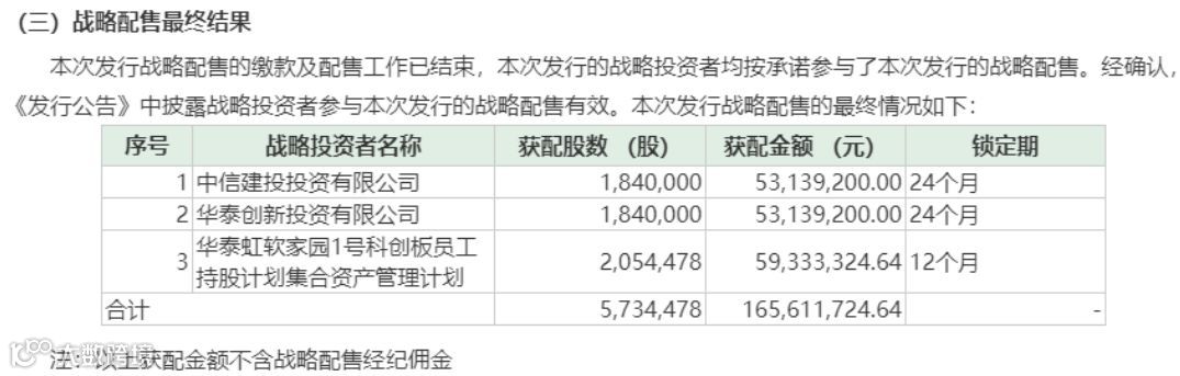 联合保荐如何跟投?虹软科技和心脉医疗两家企业在发行中给出答案。其中,虹软科技保荐券商为中信建投和华泰联合证券,募资总额为13.28亿元,跟投比例为4%。而根据发行结果来看,中信建投投资和华兴创新投资分别获配184万股,获配金额为5313.92万元,相当于两家券商合计跟投比例达到8%。