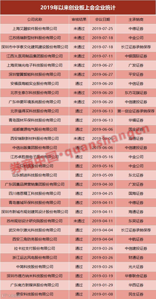 券商中国记者据wind数据统计,今年以来共有30家创业板拟上市企业接受了发审会的审核,但最终仅有20家顺利拿到上市入场券,过会率仅为66.67%。但实际上这一数据相比于去年全年创业板50%的过会率,已经出现了较大幅度的改善。