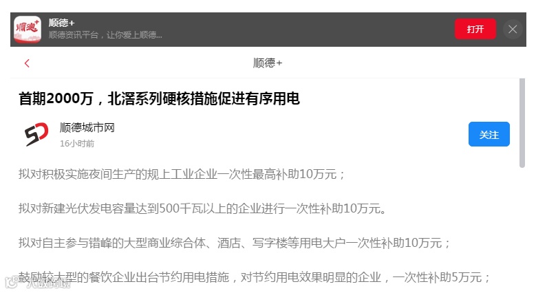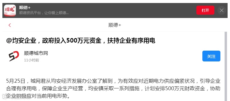 【光合能源资讯】大良投入“千万”政策补助,助企业渡用电难关