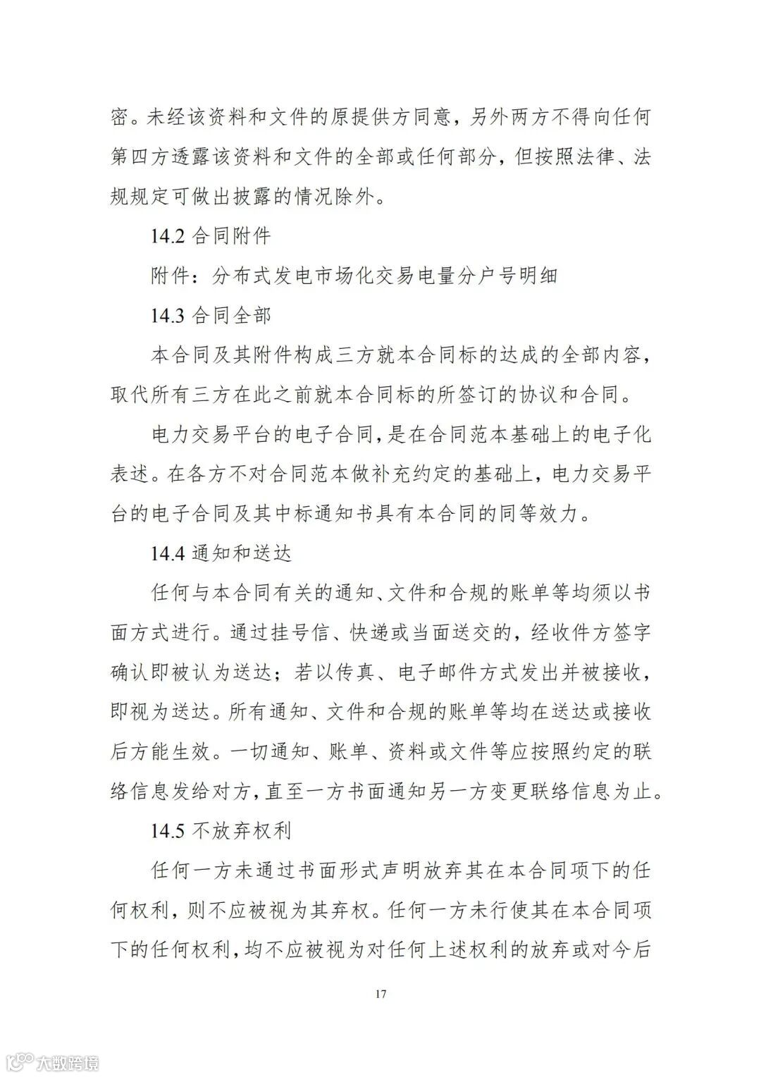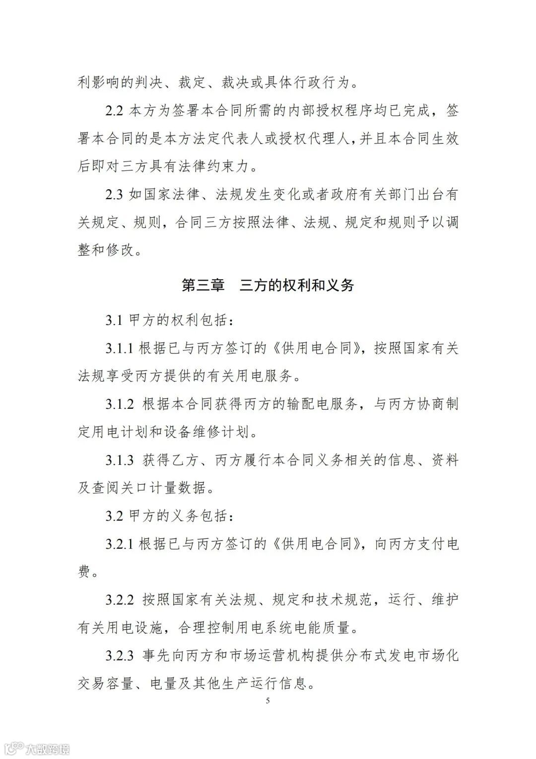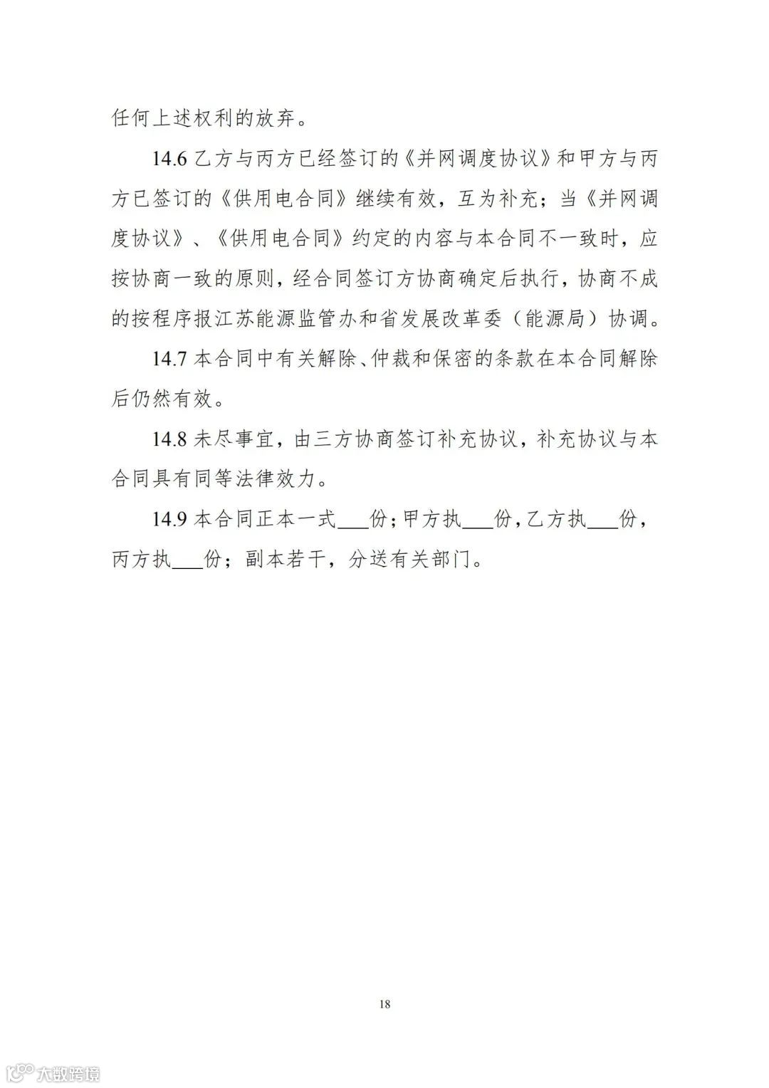 2020年12月7日,江苏能监办印发了《江苏分布式发电市场化交易及电网企业输配电服务三方合同(示范文本)》,各有关单位可在开展分布式发电市场化交易工作时参照使用。