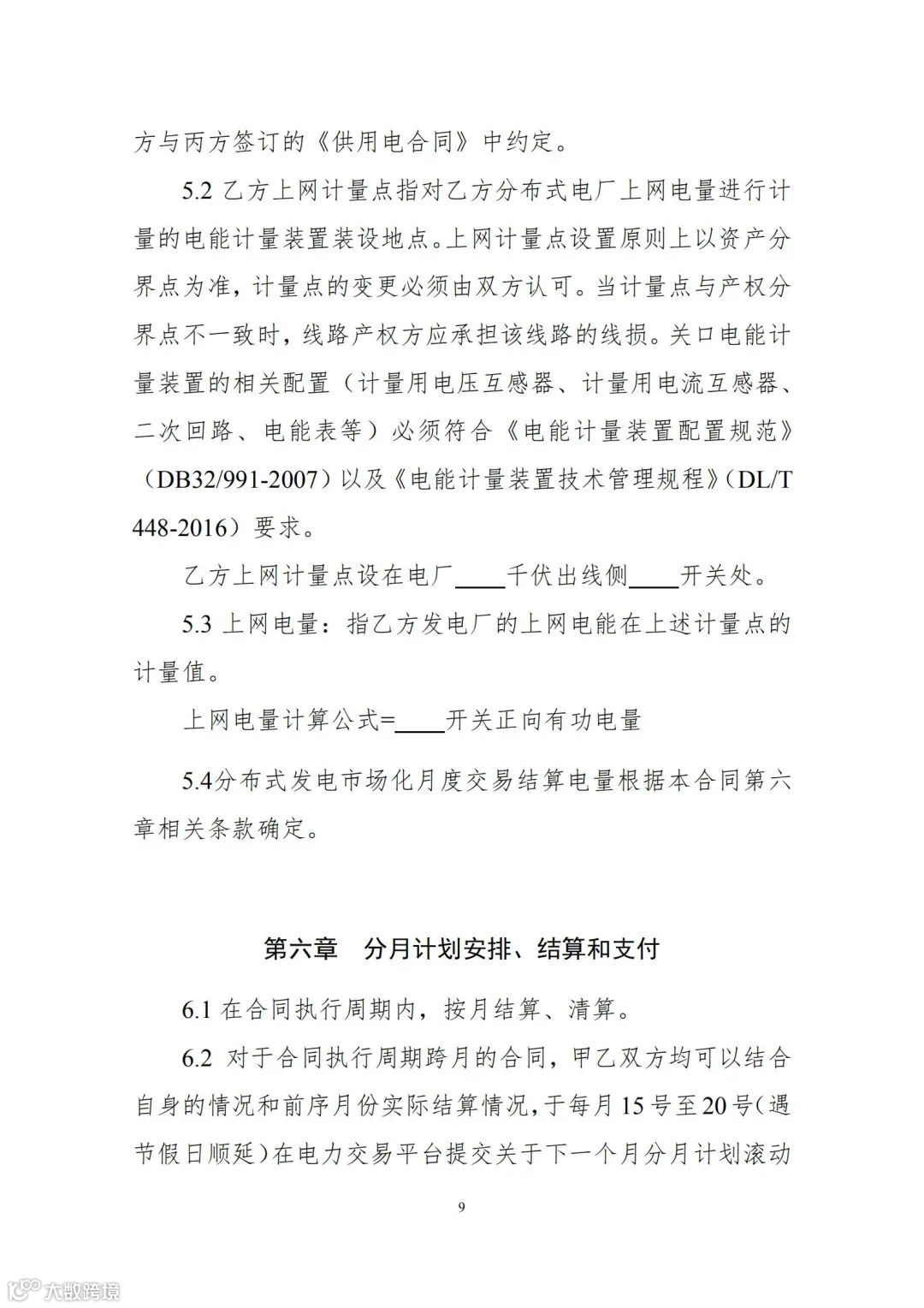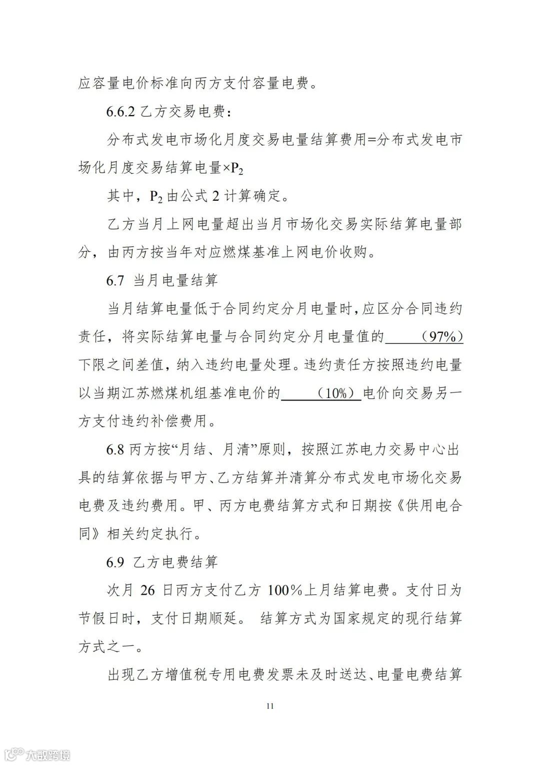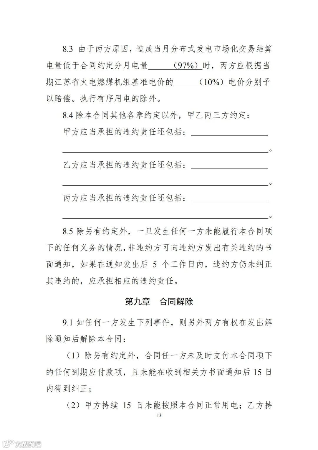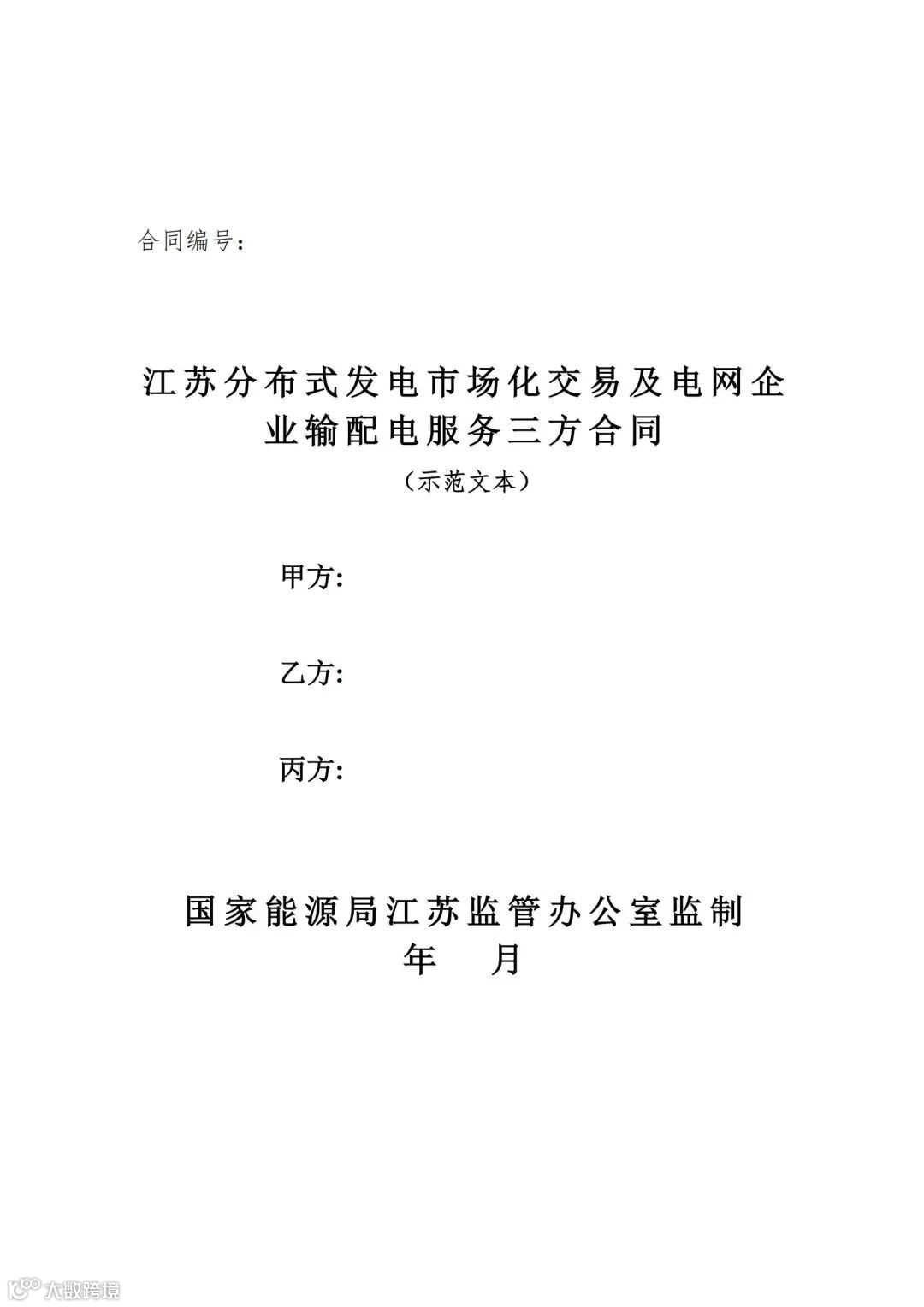 关于印发《江苏分布式发电市场化交易及电网企业输配电服务三方合同(示范文本)》的通知