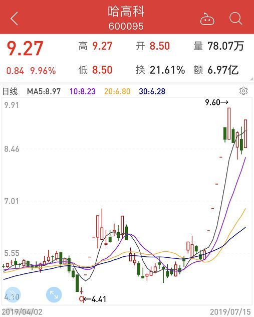 哈高科于15日开盘后,股价涨停。这是公司7月2日复牌以来的第6个涨停板。此前,由于大盘回调,加之湘财证券被曝出踩雷承兴,公司股价一度跌停。