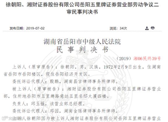 2018年3月8日,岳阳市劳动人事仲裁委员会只裁定湘财证券五里牌营业部需向徐某支付2007年4月至2008年3月差额工资1.08万元,驳回徐某的其他仲裁请求。对此结果徐某表示不服,提起诉讼。