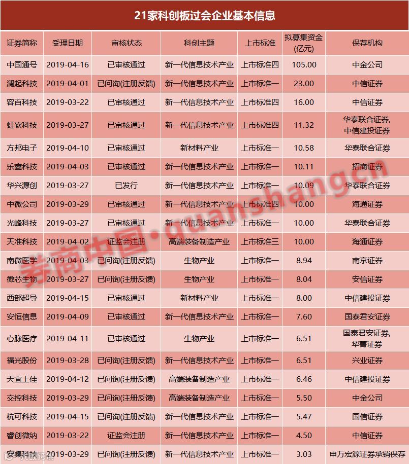 科创板正紧锣密鼓筹备,这个周末,第八批科创板过会企业出炉,虹软科技、中国通号的科创板首发上市申请获上市委审议通过。6月5日至今,已有21家科创板企业过会,过会率保持在100%。
